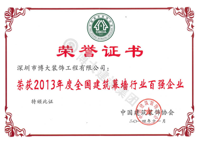 2013年度中國建筑幕墻行業百強