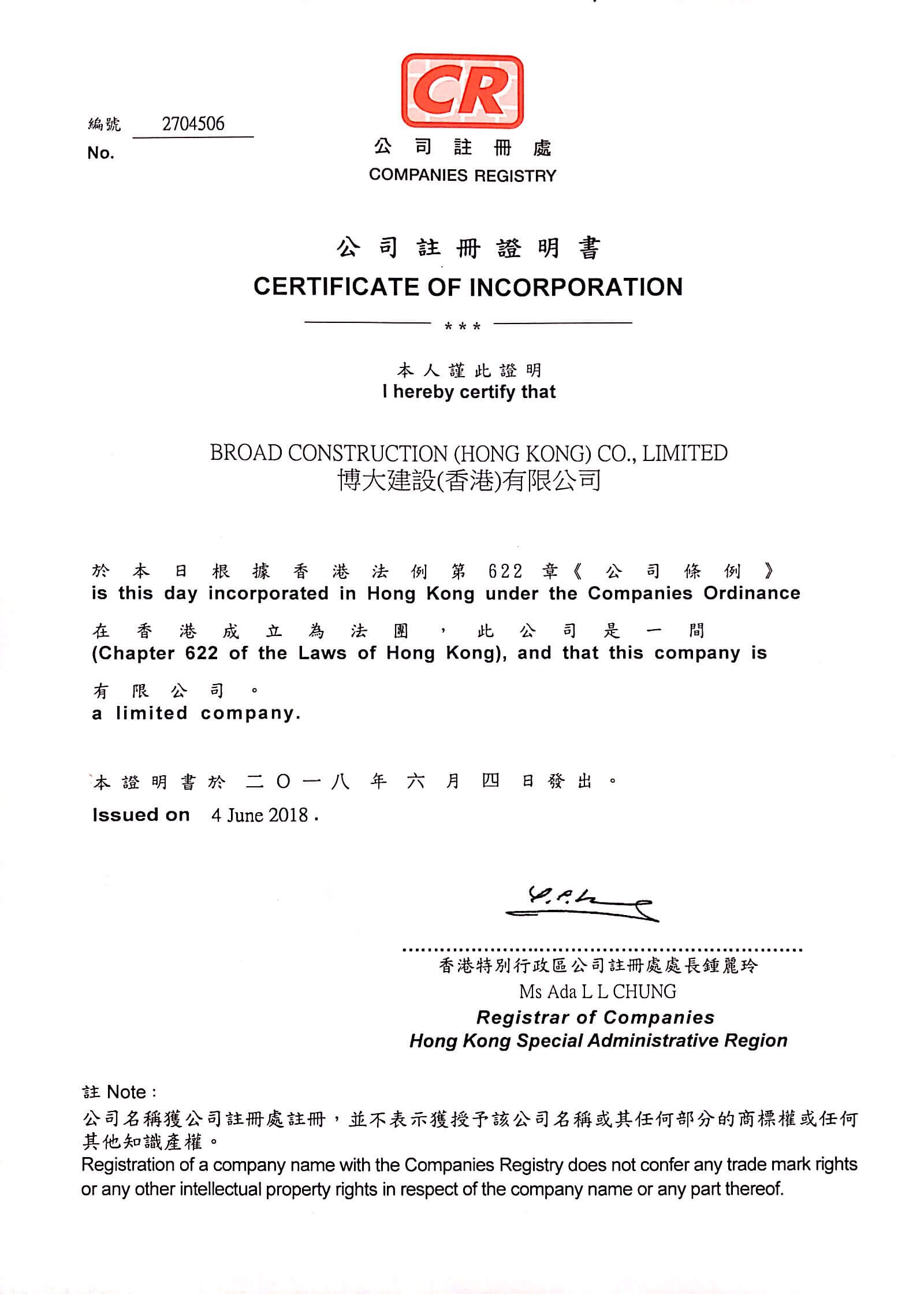 6月4日,博大建設(shè)集團(tuán)香港公司正式注冊成立,博大建設(shè)集團(tuán)總部設(shè)在深圳,加上之前成立的澳門公司,初步完成粵港澳大灣區(qū)的戰(zhàn)略布局。